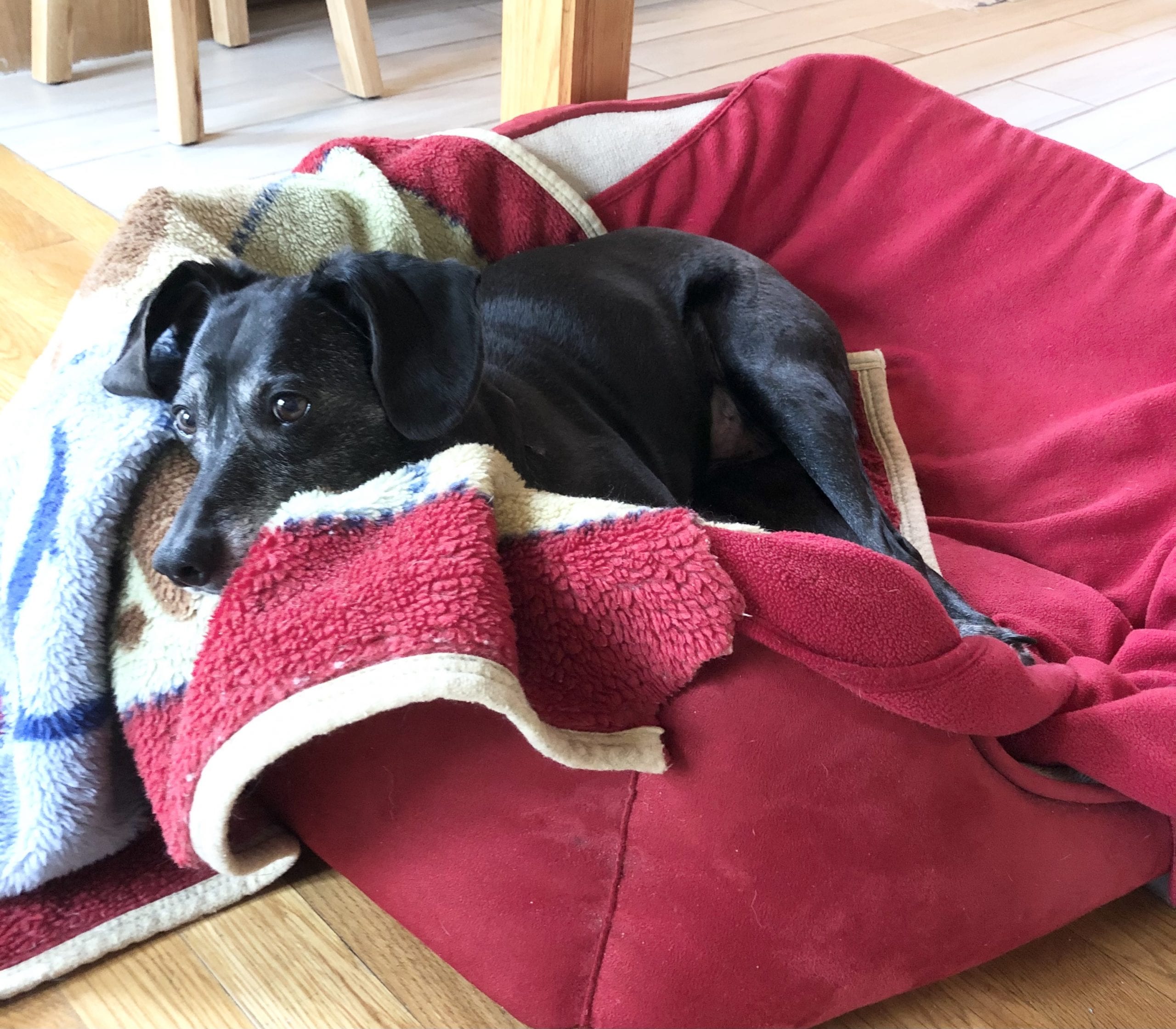 I practically grabbed Murphy, so tiny, wearing a little sweater and wrapped in his blanket (still has; shown in photo), out of the handler’s arms and let my then-husband deal with the paperwork.